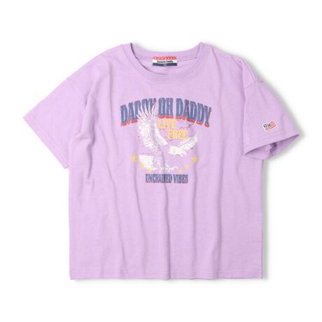 DaddyOhDaddyのアメカジテイストの120〜170cmのスクール、ジュニアアイテムライン。直営店では直営オンラインショップ「こどもの森e-shop」各店のみでの販売になります。【直営実店舗での販売はありません。】1000円(税抜)のプチプライスがうれしい、デイリー使いにオススメな半袖Tシャツ。ワシとロゴのかすれ、ひび割れプリントがアメカジテイストでかっこいい!【アイテム】トップス カジュアル お洒落 オシャレ かっこいい かわいい 可愛い 普段着 デイリーウェア お出かけ着 お外着 お外遊び着 子ども服 こども服 男児 男の子 ボーイズ キッズ トドラーサイズ 幼稚園 保育園 小学校 通園 通学 小学生 2026年春夏物新作 丸高衣料 半袖 ジュニアサイズ スクールサイズ 男女兼用 ユニセックス 女児 女の子 ガールズ 中学校 中学生 高校生 修学旅行 林間学校 校外学習 遠足 ダディオダディ スミブラック 黒色 オフホワイト 白色 パープル 紫色 わし 鷲 鳥