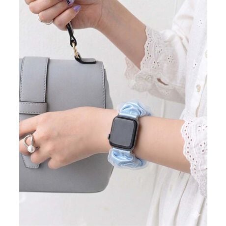 伸縮性のあるシュシュタイプなので、バックル操作の必要がなく、忙しい朝もサッと腕に通すだけで装着完了。