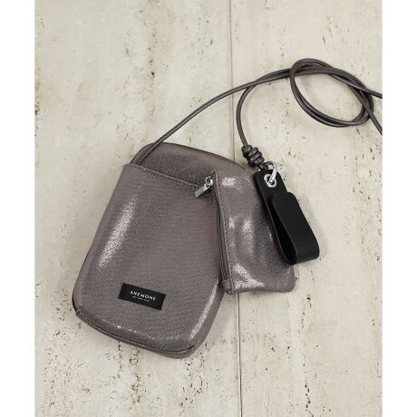 メタリックカラーが、コーデにアクセントを与えるネックポーチ。