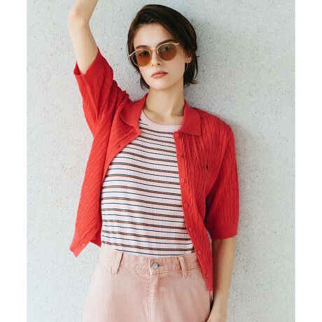 ・POLO BCSらしいケーブル柄がポイントな半袖ニット・胸元のPOLO BCSプレイヤー刺繍が上品なアクセントに