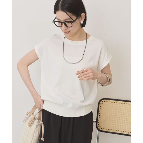 涼しく美しく着こなす大人のサマーニット接触冷感とUVカット機能を備えた、暑い季節にうれしい着心地のニットです。肌に触れた瞬間にひんやりと感じられ、日差しの強い日でも快適に過ごせます。フレンチスリーブが肩まわりをさりげなくカバーし、女性らしいやわらかな印象を演出します。シンプルなクルーネックと程よくゆとりのあるシルエットで、きれいめにもカジュアルにも着回ししやすい一枚です。裾リブが全体のバランスを整え、すっきりとした着こなしを叶えます。さらにマシンウォッシャブル仕様でお手入れも簡単なため、デイリーに活躍します。透け感[ややあり]