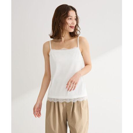 上品なひげレースがポイントとなり、重ね着スタイルをぐっと格上げしてくれるキャミソールです。スクエアネックのすっきりとしたラインが顔まわりを美しく見せ、抜け感のあるスタイリングを演出します。肌あたりの良い素材で仕立てており、長時間の着用でも快適に過ごせます。シンプルなトップスに合わせるだけで、レースのディテールが程よいアクセントとなり、コーディネートに女性らしいニュアンスをプラスします。季節を問わずインナーとして活躍し、デイリーからきれいめスタイルまで幅広く取り入れやすいアイテムです。