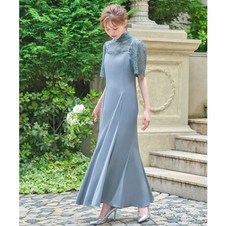 レースのトップスとキャミソール型のマーメイドワンピースの2点セットのパーティードレスです。