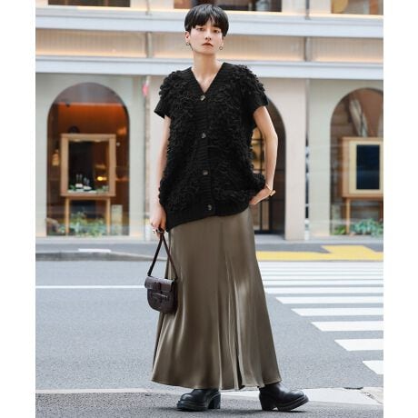 ボリューム感のあるローゲージのループ編みを施すことでキャッチーな素材感に仕上げました。
