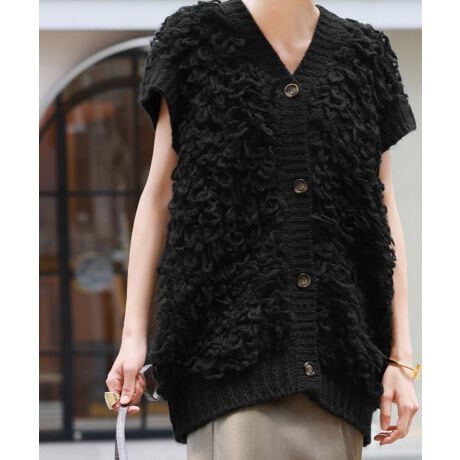ループ編みのニットジレ。