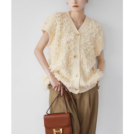 ループ編みのニットジレ。
