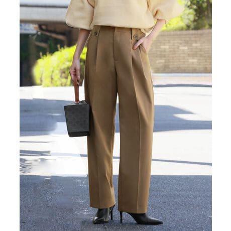 両サイドに飾りタブとボタンが付いた、トレンドライクなパンツです。