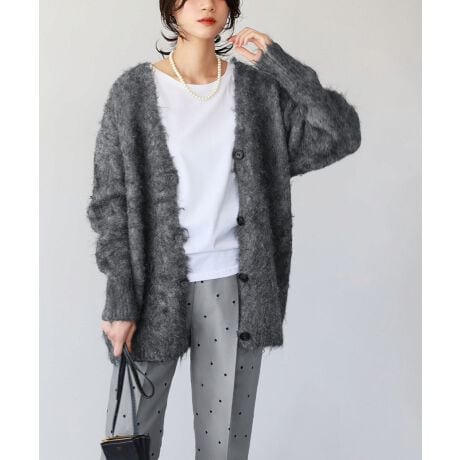 Vネックオーバーサイズシャギーニットカーディガン