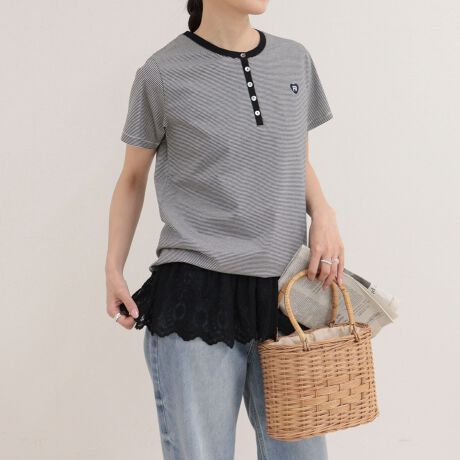 ・左胸のハートFR刺繍がワンポイントで可愛いヘンリーTシャツ