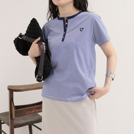 ・左胸のハートFR刺繍がワンポイントで可愛いヘンリーTシャツ