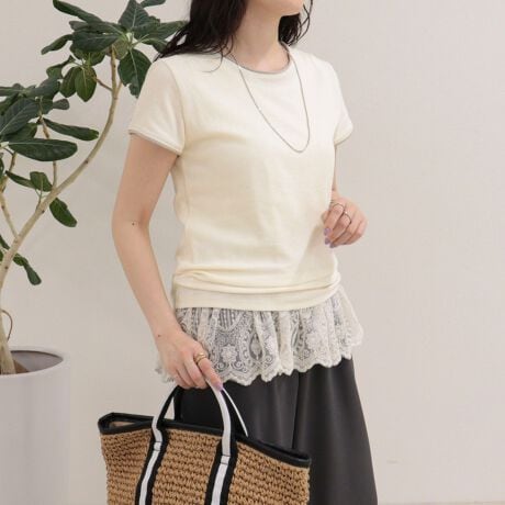 ・清涼感のあるタッチが魅力のリンガー配色Tシャツ