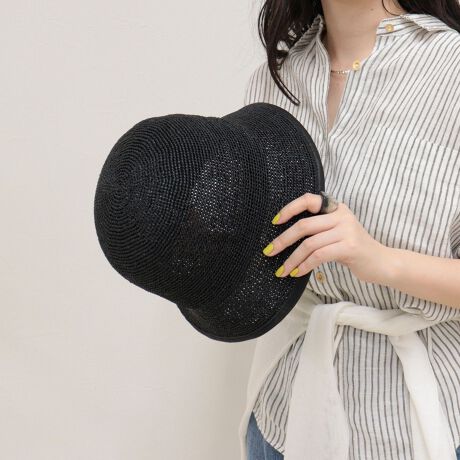 ・ナチュラルな風合いが魅力のラフィア素材を使用したバケットハット