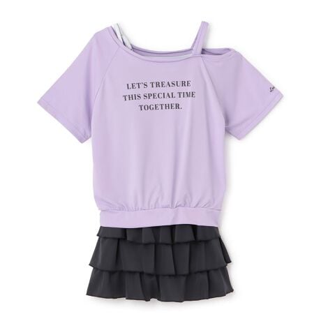 紫外線対策に役立つUVカット率90%以上の水着です。ワンショルダーとフリルスカートがポイントになった女の子らしいデザイン。Tシャツを着たままでも水遊びができ、冷えや強い日差しから守ってくれます。上下で分かれたセパレートタイプでお着替えしやすいのも魅力です。