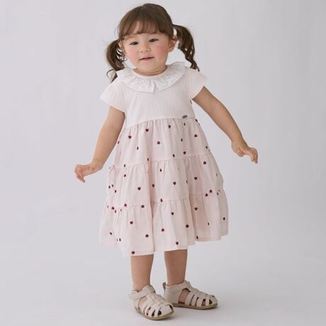 華やかなティアードシルエットとハート刺しゅうで可愛らしい雰囲気を演出。