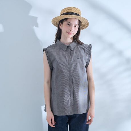 袖口のフリルがポイントになっているノースリーブブラウスです。