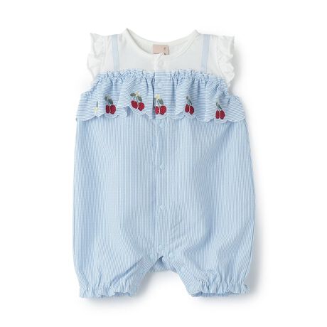 カラーによって異なるフルーツを刺しゅうしたキュートなカバーオールです。