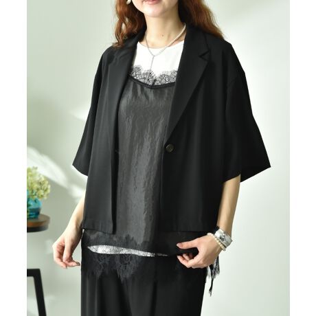 【CLOCHE】【接触冷感】クールグログラン5分袖テーラージャケット