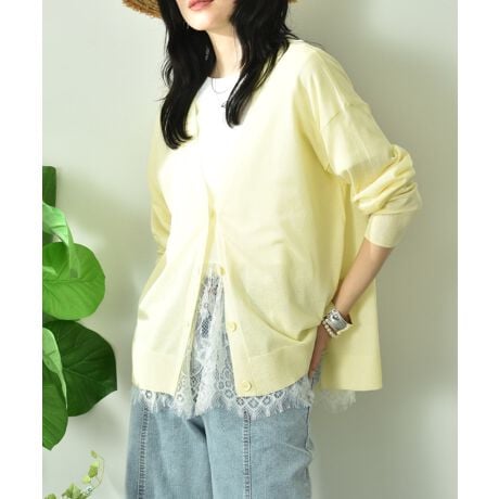 抗ピル・UV・接触冷感・手洗い可能とこれから夏に向けて活躍する素材を使用したシンプルカーディガン。すっきりしたシルエットながら柔らかな素材を使用しているため動きやすく、気になる腕回りもラクに着回せます。脇スリットは主張し過ぎない裾の前後差でこなれ感をプラス。Vネックで顔回りをすっきり見せてくれるのも◎無駄のないデザインが着回しに重宝するお勧めな1枚です。