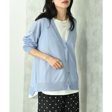 抗ピル・UV・接触冷感・手洗い可能とこれから夏に向けて活躍する素材を使用したシンプルカーディガン。すっきりしたシルエットながら柔らかな素材を使用しているため動きやすく、気になる腕回りもラクに着回せます。脇スリットは主張し過ぎない裾の前後差でこなれ感をプラス。Vネックで顔回りをすっきり見せてくれるのも◎無駄のないデザインが着回しに重宝するお勧めな1枚です。