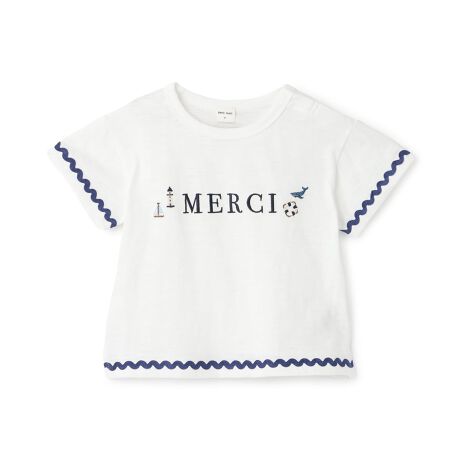 春夏シーズンにぴったりなマリン刺しゅうが目を引くTシャツです。袖口と裾にあしらった波状の山道テープが可愛らしいアクセント。やわらかいコットン100%素材で、快適な着心地を実現しました。触れた時にひんやりと感じる接触冷感機能つきなのもうれしいポイントです。内側にお名前を記入できるタグつき。※90サイズのみ肩開き