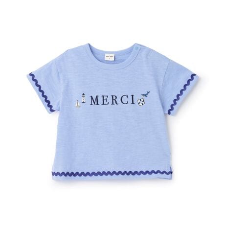 春夏シーズンにぴったりなマリン刺しゅうが目を引くTシャツです。袖口と裾にあしらった波状の山道テープが可愛らしいアクセント。やわらかいコットン100%素材で、快適な着心地を実現しました。触れた時にひんやりと感じる接触冷感機能つきなのもうれしいポイントです。内側にお名前を記入できるタグつき。※90サイズのみ肩開き