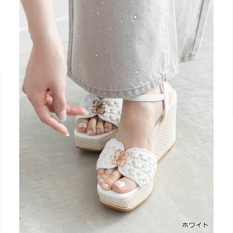 シーズナブルな装いを叶える涼やかなナチュラルな編みデザインの一足です。