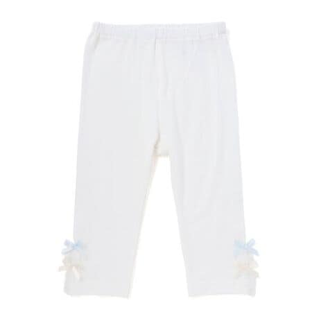 裾にあしらったチュールとリボンが、シンプルな中にさりげない可愛さを添える女の子用レギンス。