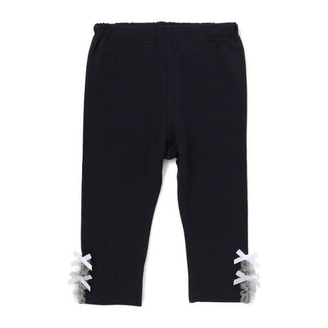 裾にあしらったチュールとリボンが、シンプルな中にさりげない可愛さを添える女の子用レギンス。