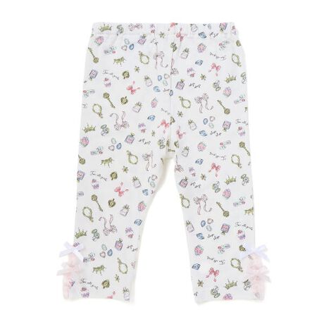 裾にあしらったチュールとリボンが、シンプルな中にさりげない可愛さを添える女の子用レギンス。