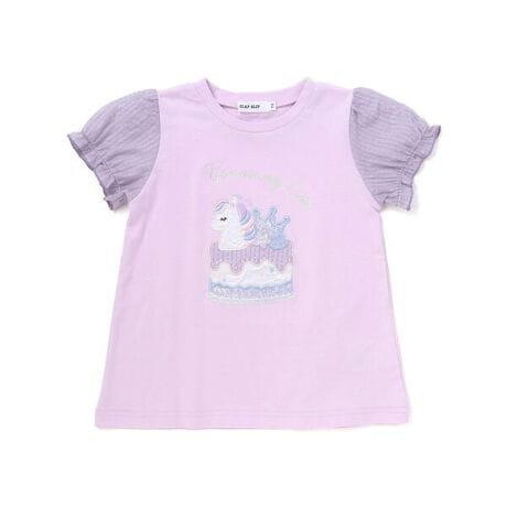 パープルは、シフォン素材のユニコーンに、刺しゅうの貝殻と、ケーキの上にのせたスパンコールの王冠がときめきをプラスします。