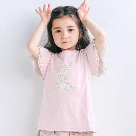 ウサギのモチーフがぱっと目を惹く、可愛らしさたっぷりの女の子用半袖Tシャツ。