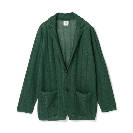 和紙ライクなポリエステル糸で編み上げた、抜群の通気性とシアー感が特徴のニットジャケット。