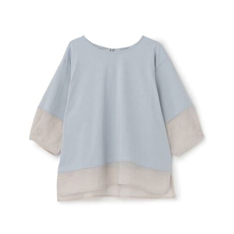 袖先と裾を異素材で切り替えたドッキングデザインのプルオーバーです。バックネックのリボンで女の子らしいアクセントをプラスしました。両サイドには、アウトスタイルでも腰回りがすっきり見えるスリット入り。リラクシーなシルエットのためデイリーユースに重宝します。1枚での着用はもちろん、ジレなどを合わせるコーデもおすすめです。
