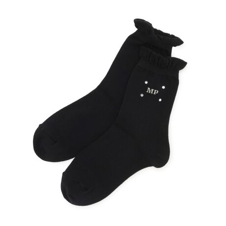 大きめのラインストーンとシルバーのMPロゴが印象的なソックスです。