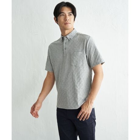 生地の凹凸で市松柄を表現した、立体感が特徴のポロシャツ。