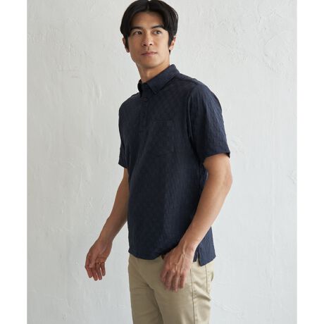 生地の凹凸で市松柄を表現した、立体感が特徴のポロシャツ。