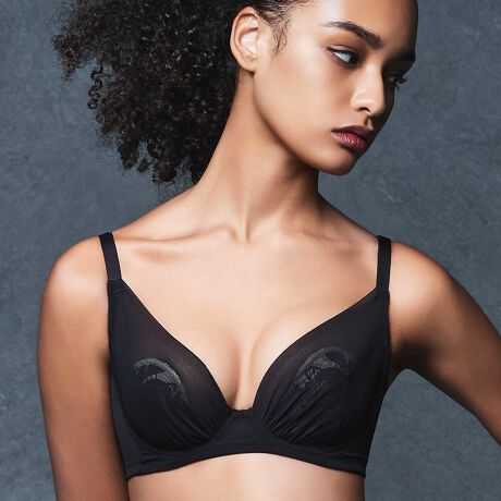 底面積の狭いカップと幅狭ワイヤーでカップに深みを持たせ、自然なバストラインを演出します。