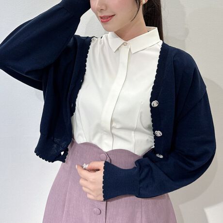 ワンピースやブラウスなど幅広いアイテムに羽織りやすく、色違いでGETするのもおすすめの一品。