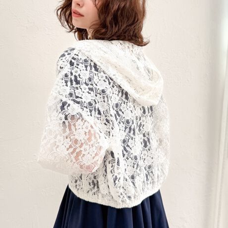 涼し気なシアー感がこれからの季節にぴったりのレースパーカー。