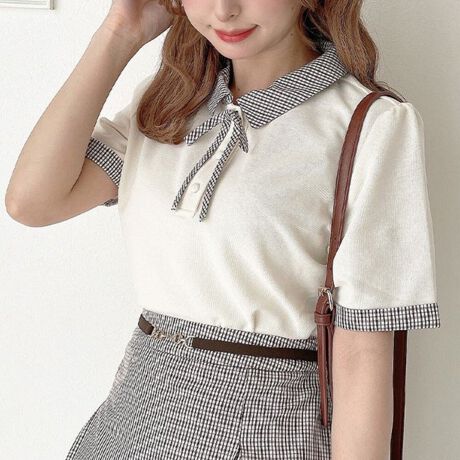 とびきりキャッチーなチェックリボンタイ付きのポロシャツ