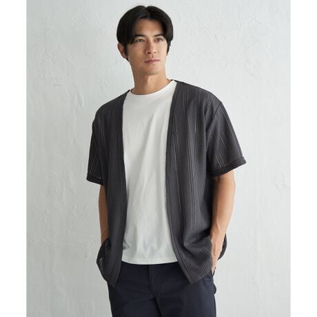 シャリ感のあるカーディガンは、ほどよい透け感があり涼しげな印象です。