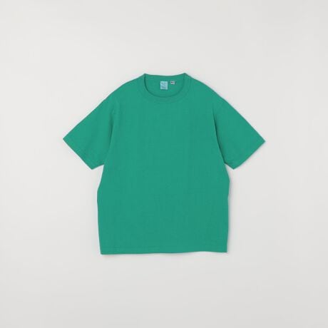 少し肩が落ち、着丈も短めに仕上げたワイドフィット、トレンド感のある半袖Tシャツ。