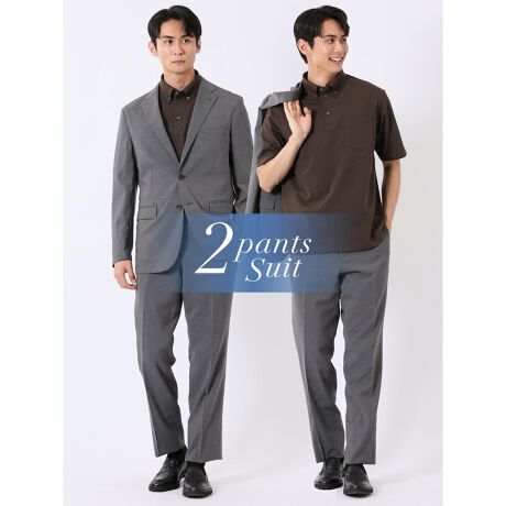ストレッチ ウォッシャブル レギュラーフィット 2ボタン 2パンツ スーツ メランジ グレー