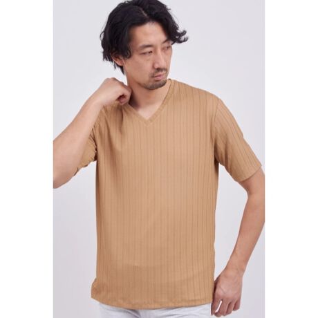 タイト寄りのシルエットで“インナーでも1枚でも成立する”設計が魅力。身体に沿うラインでだらしなく見えず、Vネックの開きも程よく首元をシャープに整えます。前を開けたジャケットのインナーでもバランスが取りやすく、襟付きの羽織りを重ねても首回りがもたつかない。シンプルなのに大人っぽく決まる、着回し力の高い一枚です。