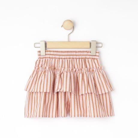 涼しい素材で今年らしいサッカー素材のストライプ柄のフリルスカパンが登場。