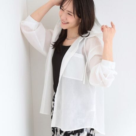通気性に富んだ素材で、軽やかな印象のフード付きシャツ。