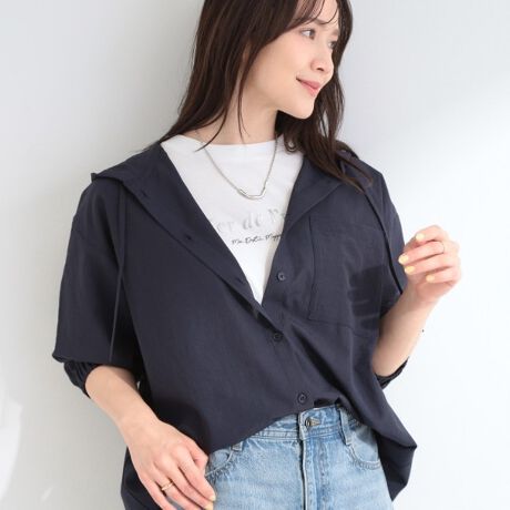 通気性に富んだ素材で、軽やかな印象のフード付きシャツ。