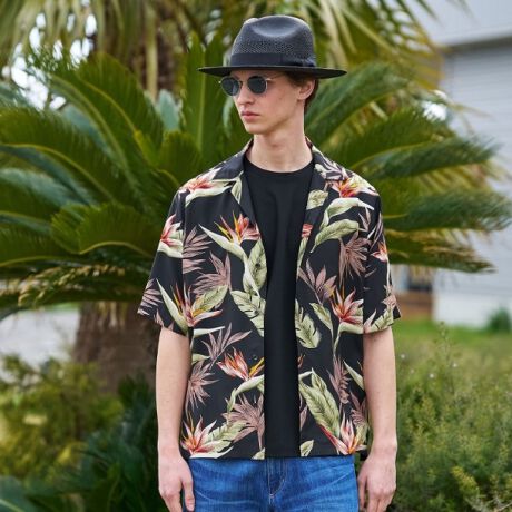 心地よい風を感じる、夏の必須アイテム「トロピカルフローラル レーヨンシャツ」。