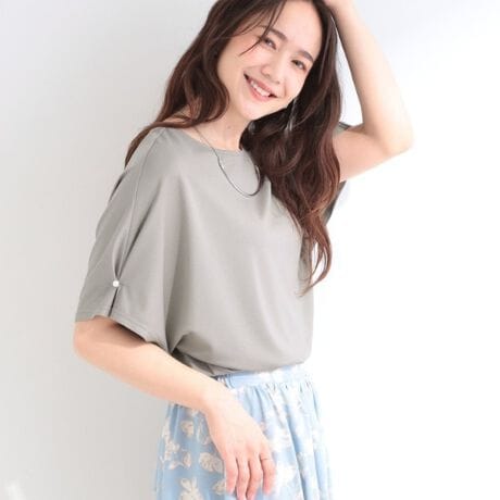 【多機能】ドルマンフェイクパール付きトップス