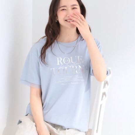 きれいめなプリントデザインが印象的な、上品さと抜け感を兼ね備えた袖チュールレイヤードTシャツ。